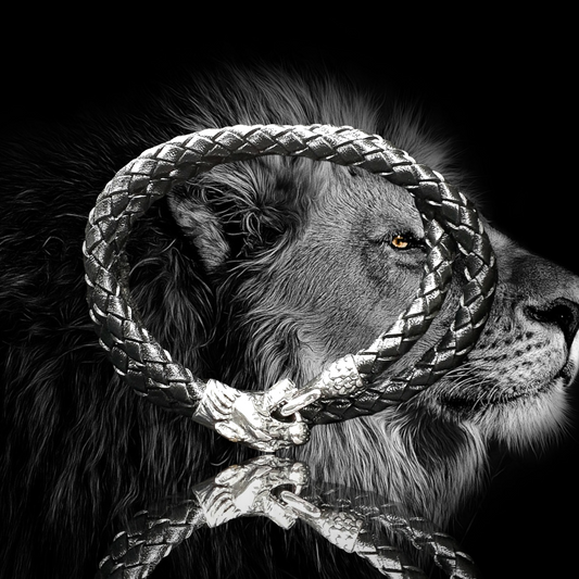 2029 Unisex weave genuine leather bracelet ‘Viking wolf’ (10mm)