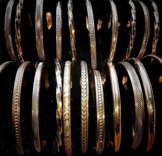 100% Copper BanglesHand milled in NZ, with 30 different patterns made to your size in soft formed metal in our Tasman factory. We can match a ring.