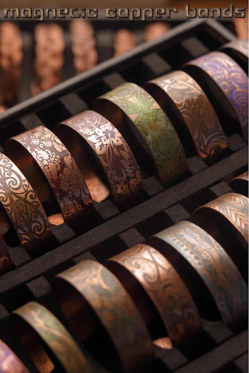 Copper magnetic 3000 gauss power bands in many designs and sizes to choose.