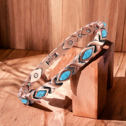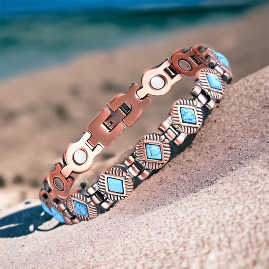 CLM38B 100% Solid Pure Copper Linked Magnetic Turquoise Bracelet