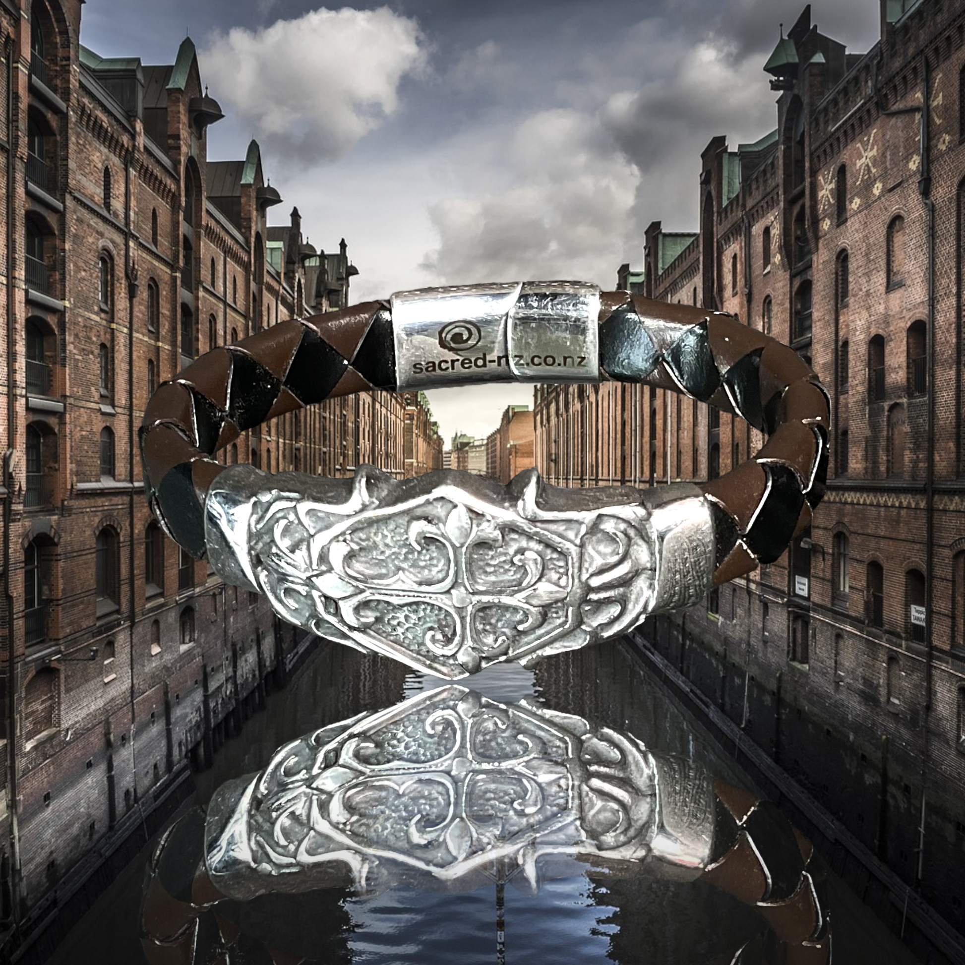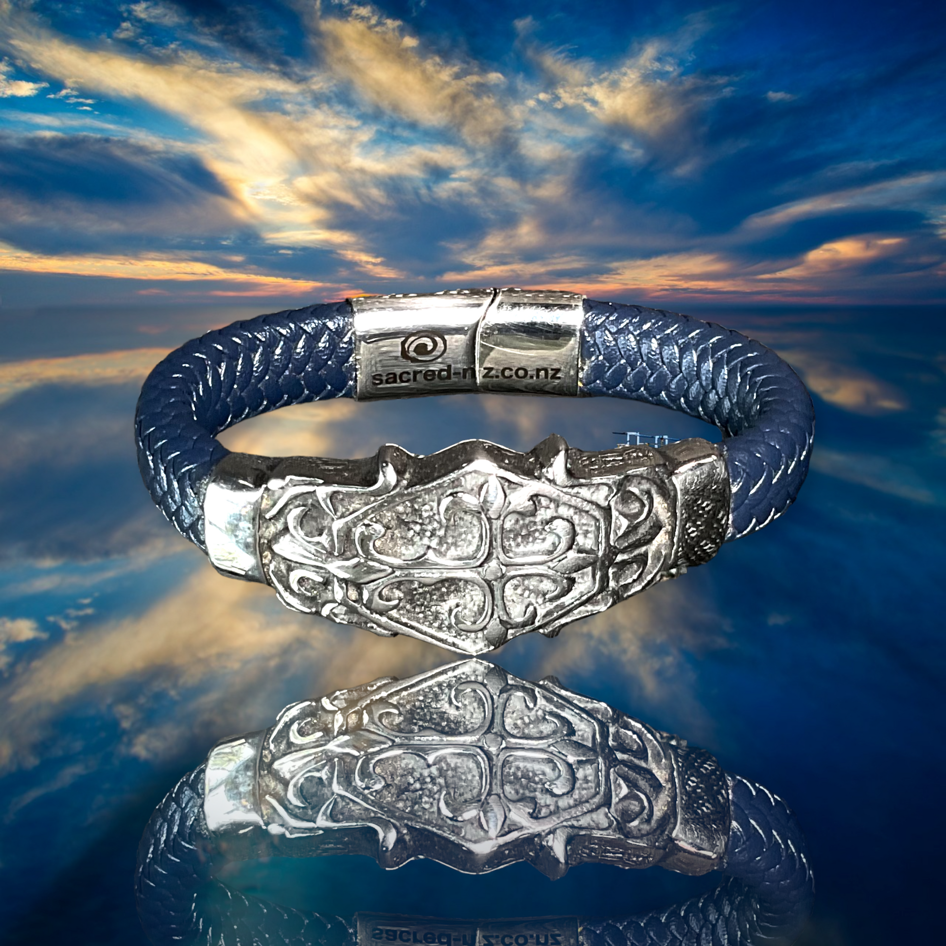 Stainless Steel bead and NZ magnetic clasp with stingray etched artwork depicting protection of our waters and of us in water.