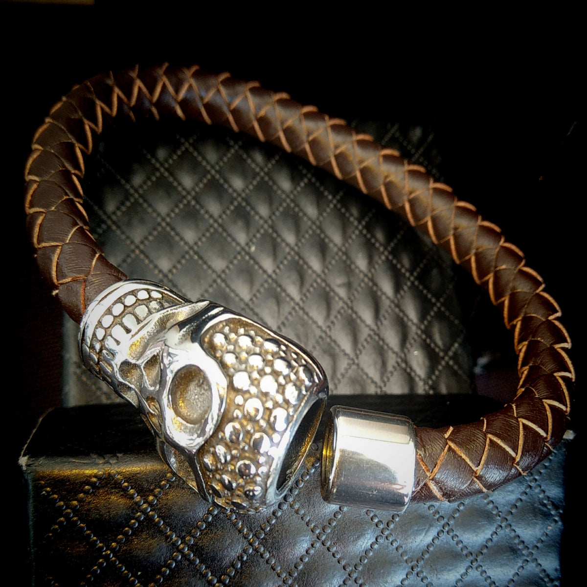 Natural leather bracelet braided leather with stainless steel clasp and magnetic closure (secure wont come apart)