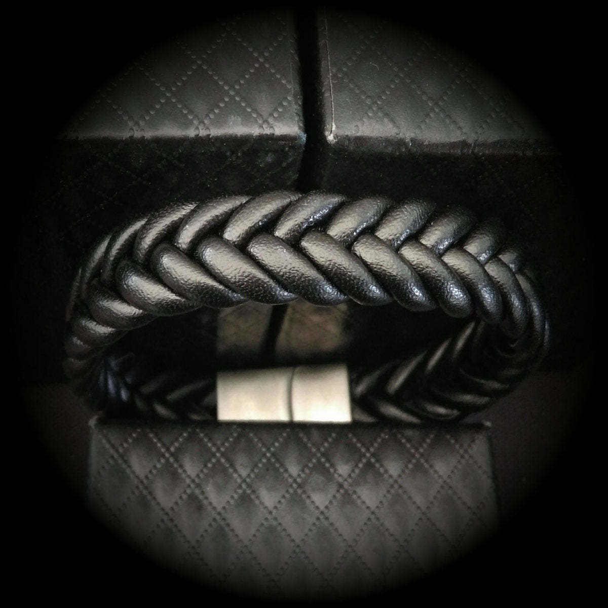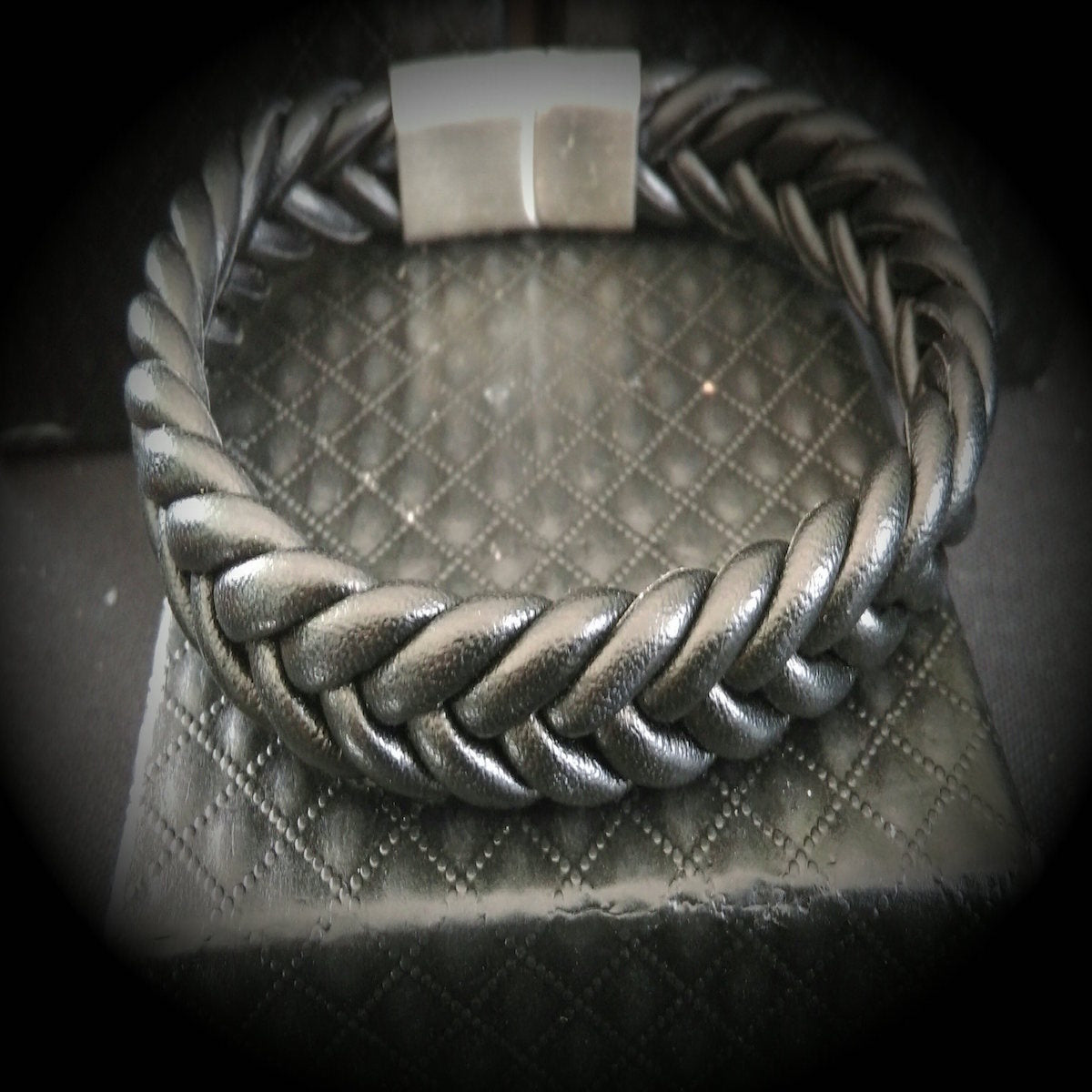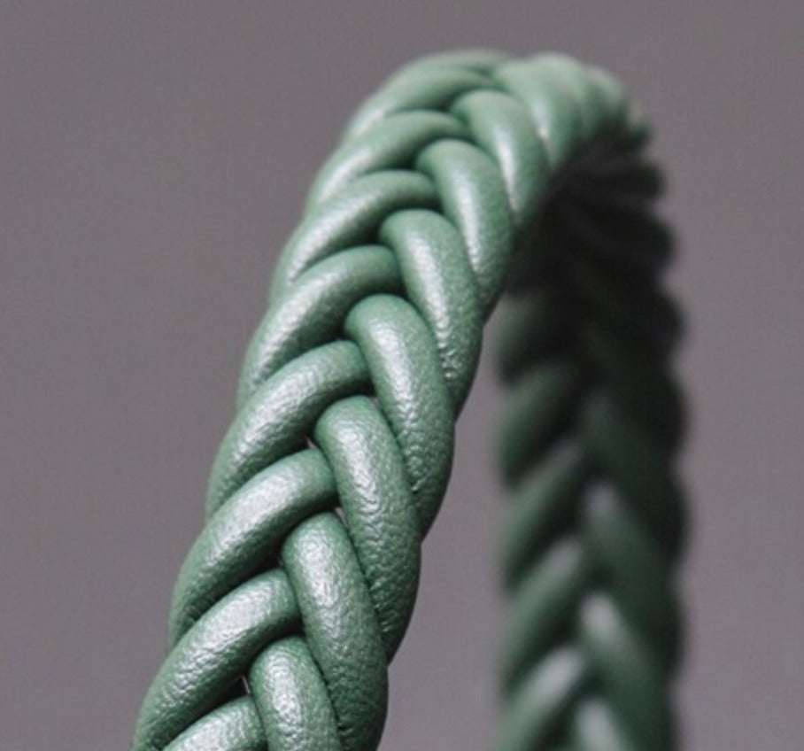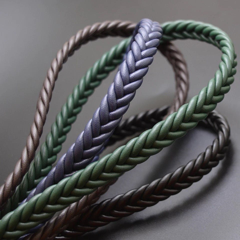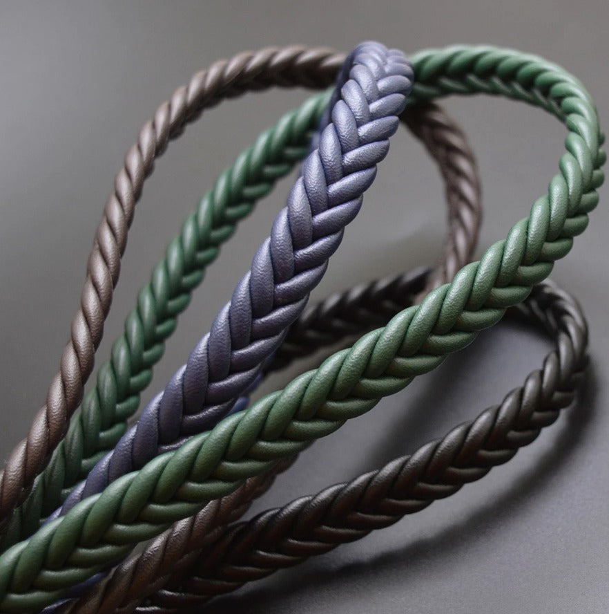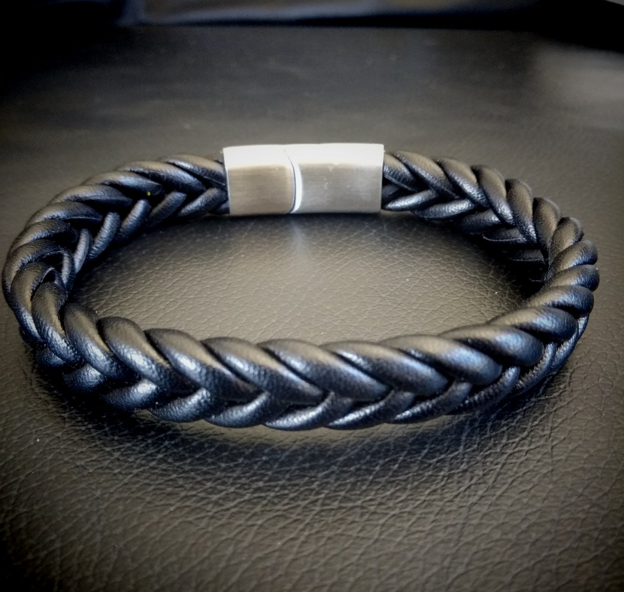 Natural leather bracelet braided leather with stainless steel clasp and magnetic closure.
