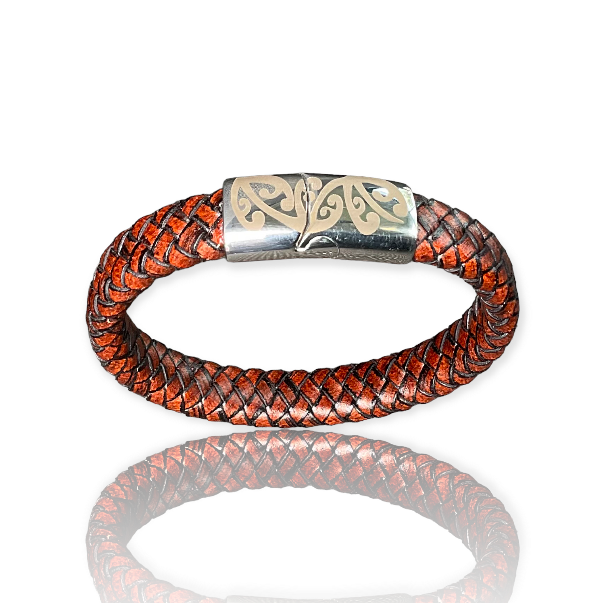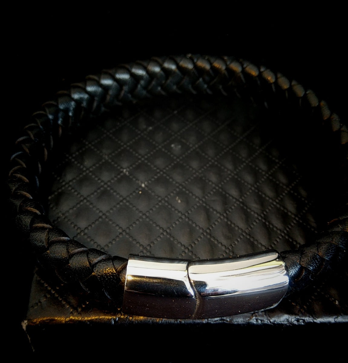 Natural leather bracelet braided leather with stainless steel clasp and magnetic closure (secure wont come apart)
