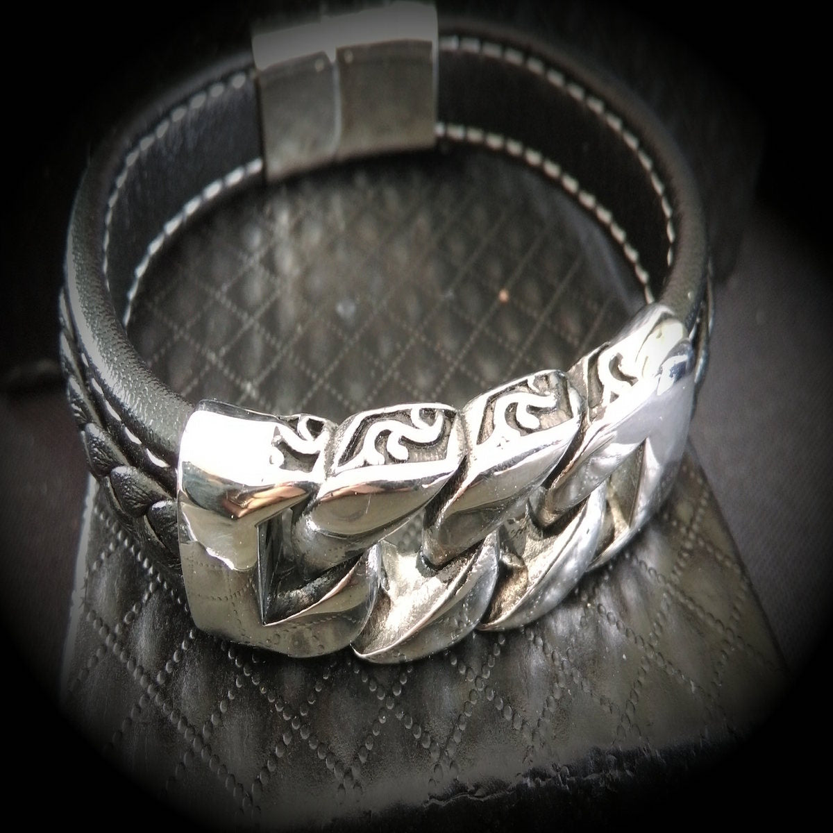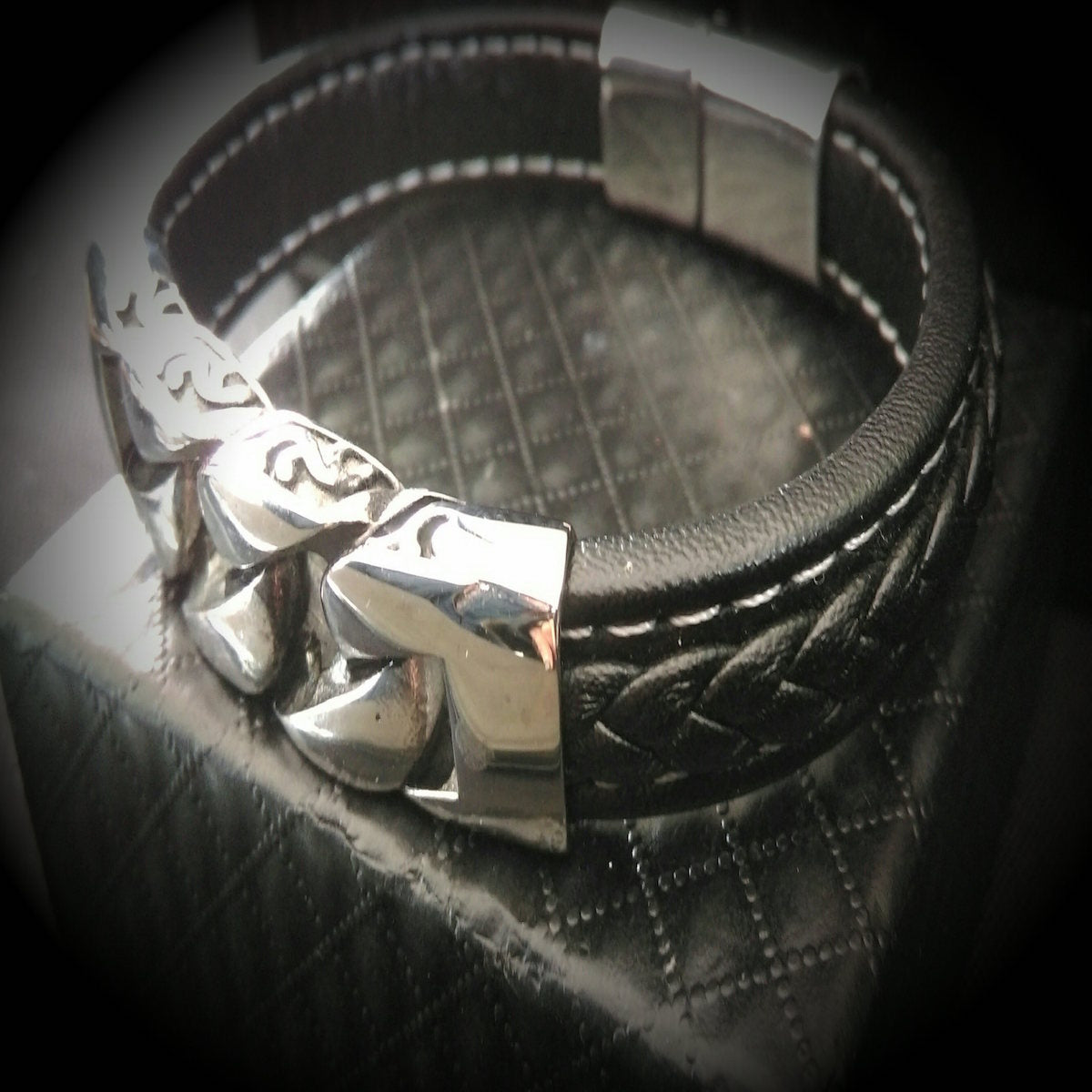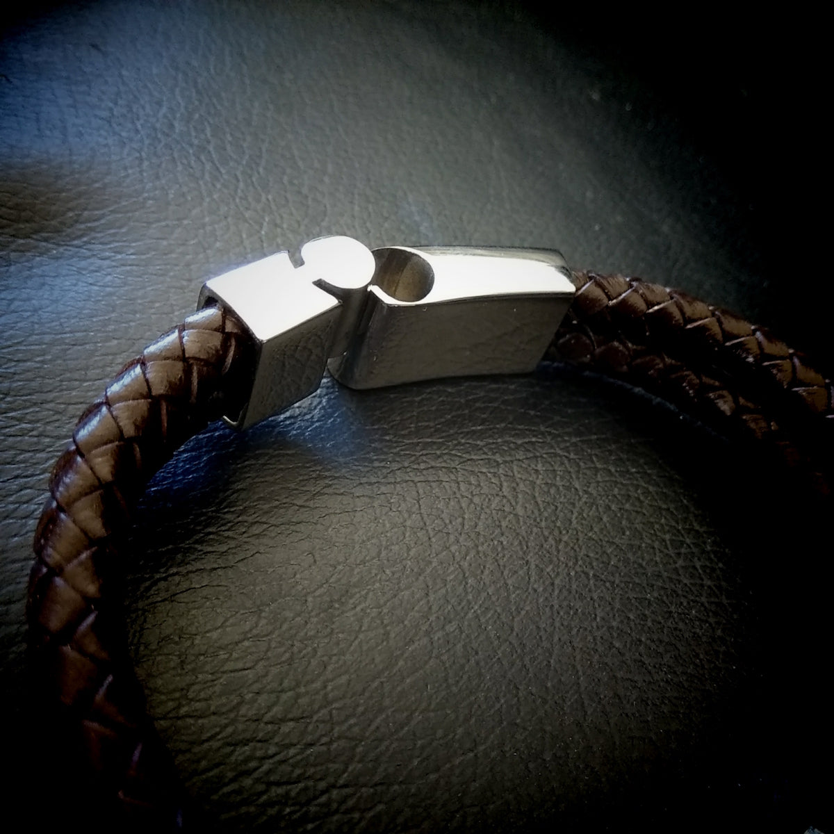 Natural leather bracelet braided leather with stainless steel clasp and magnetic closure (secure wont come apart)