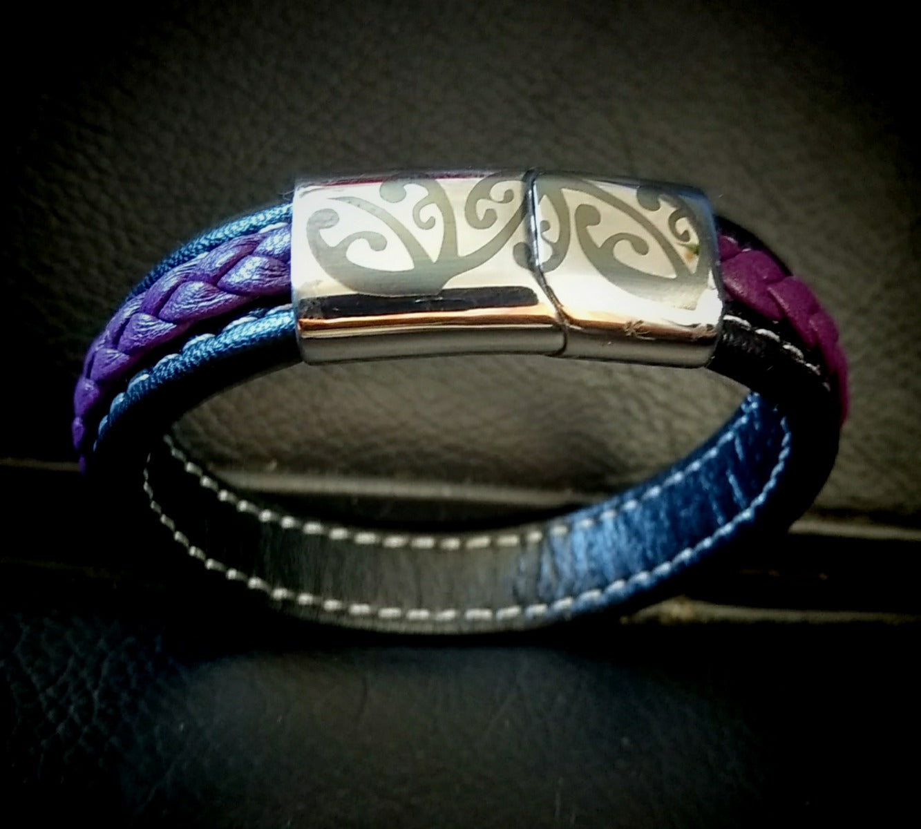 Stainless Steel bead and NZ magnetic clasp with Koru etched artwork depicting the connection of family the bead is depicting the British aspect of NZ, combining the two symbolising the unity of both world in one.