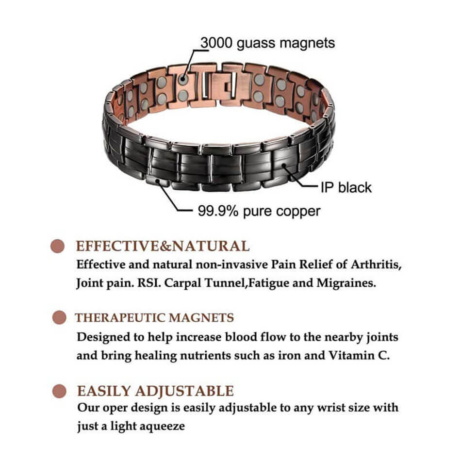 CLM310 100% Pure Copper Linked Magnetic Bracelet 210x15mm