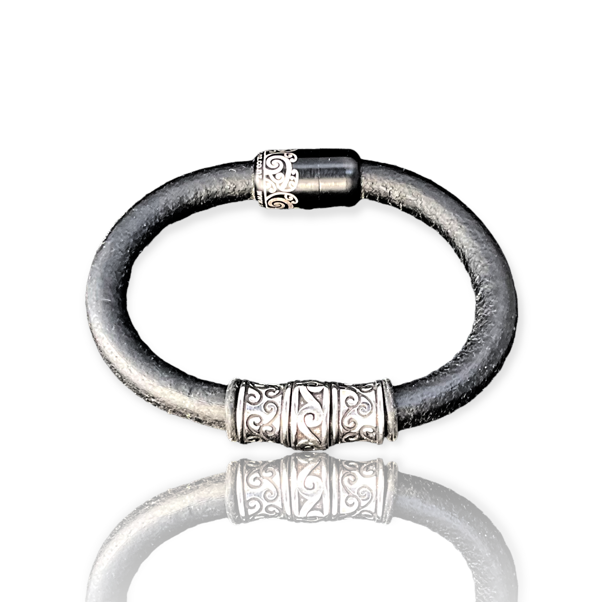Magnetic Stainless Steel clasp with Bolo leather weave with stainless steel beads.