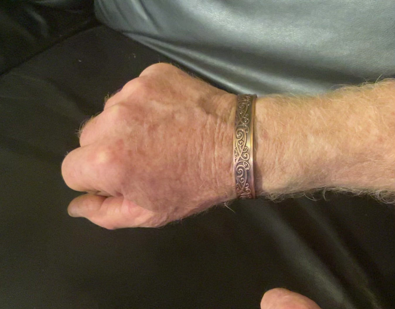 Our bands are made of highest quality 100% soft annealed copper, this band is best left on for 24/7. Our magnets are capped with stainless steel or brass protective cup to extend their life.