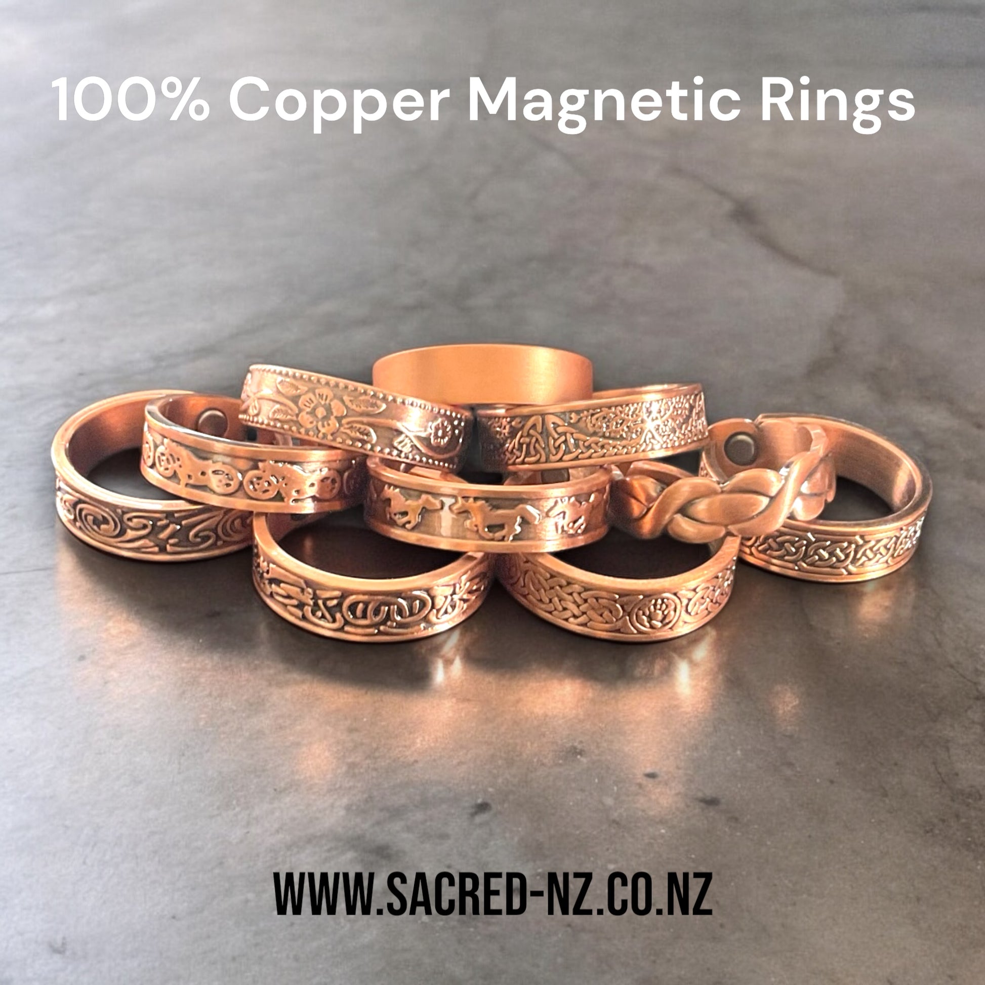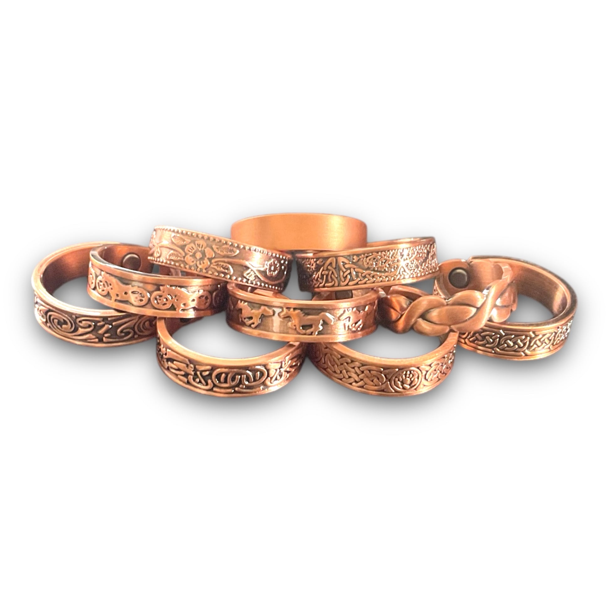 Copper magnetic 3000 gauss power bands with a magnet each end embedded in our copper, in many designs and sizes to choose.