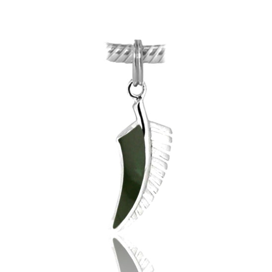 Sterling Silver Kiwiana sacred designer charm that will enhance your bracelet to create an individually designed bracelet. Jade (Pounamu) Greenstone is our name for the nephrite jade that comes from the South Island of New Zealand. We also call it pounamu. Nephrite is principally a calcium magnesium silicate. Its structure is made up of tightly felted crystal fibres which is the reason for its' incredible toughness (Mohs 6.5) and its unique structure, it is also the reason we can do what we do with it and why the surface of a finished carving possesses a smooth glowing lustre and a greasy or wax-like quality. Designed and carved by Nita Henry NZ award winning designer